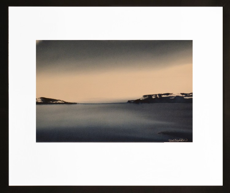 Akvarell, 53 x 43 cm inkludert passepartout og ramme.