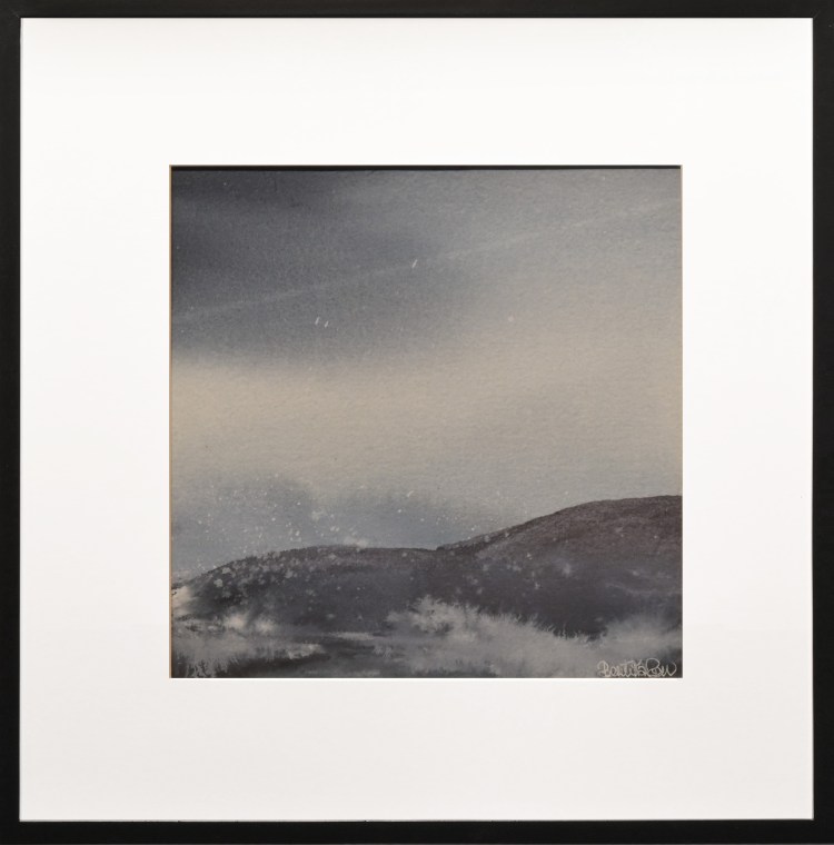 Akvarell, 31 x 31 cm inkludert passepartout og ramme.